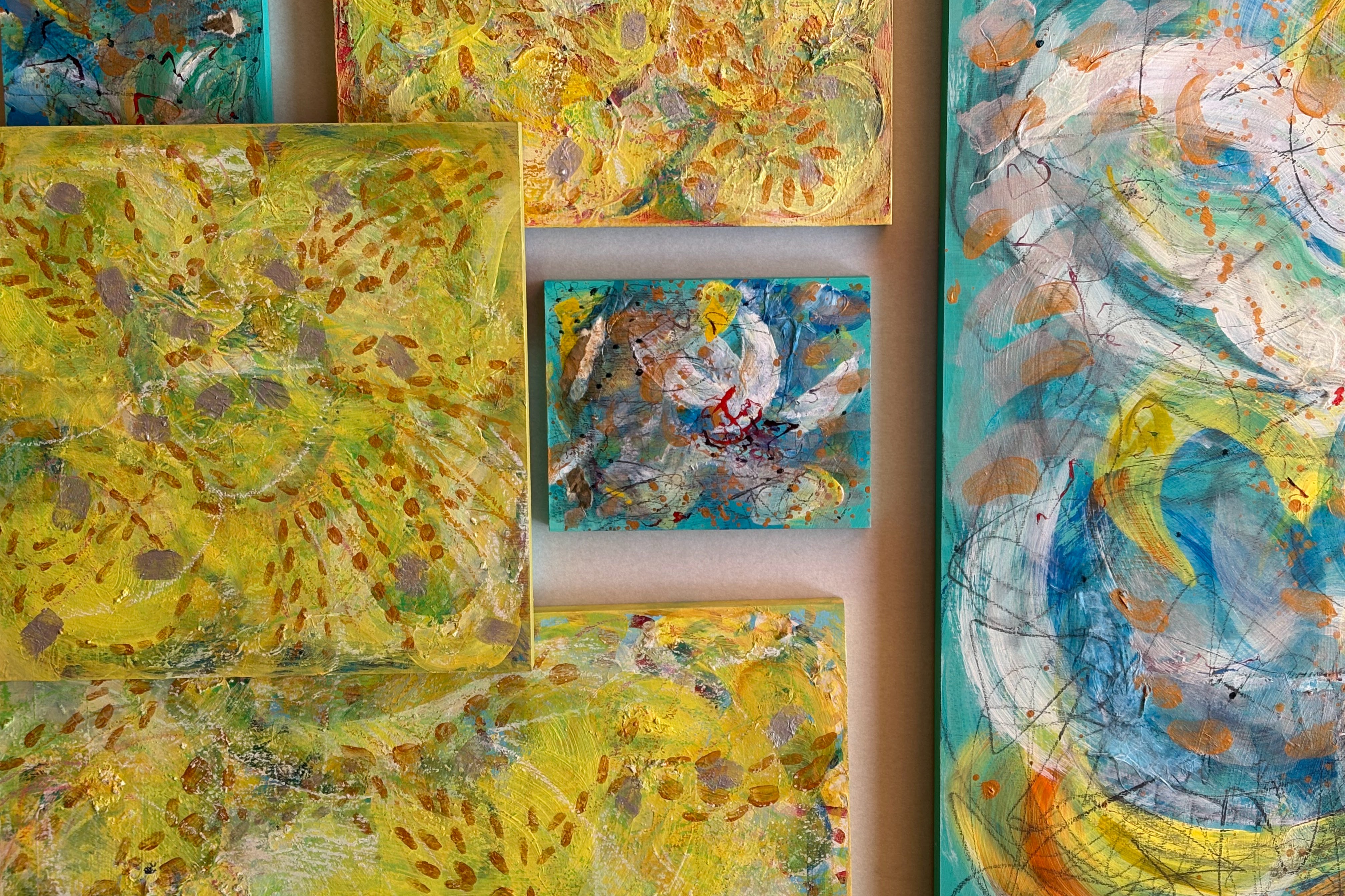 逗葉、鎌倉、横須賀など三浦半島の自然にインスパイアされた Mixメディア (色々な画材を使った)新作 絵画 を Ula Shibazaki が発表します。
