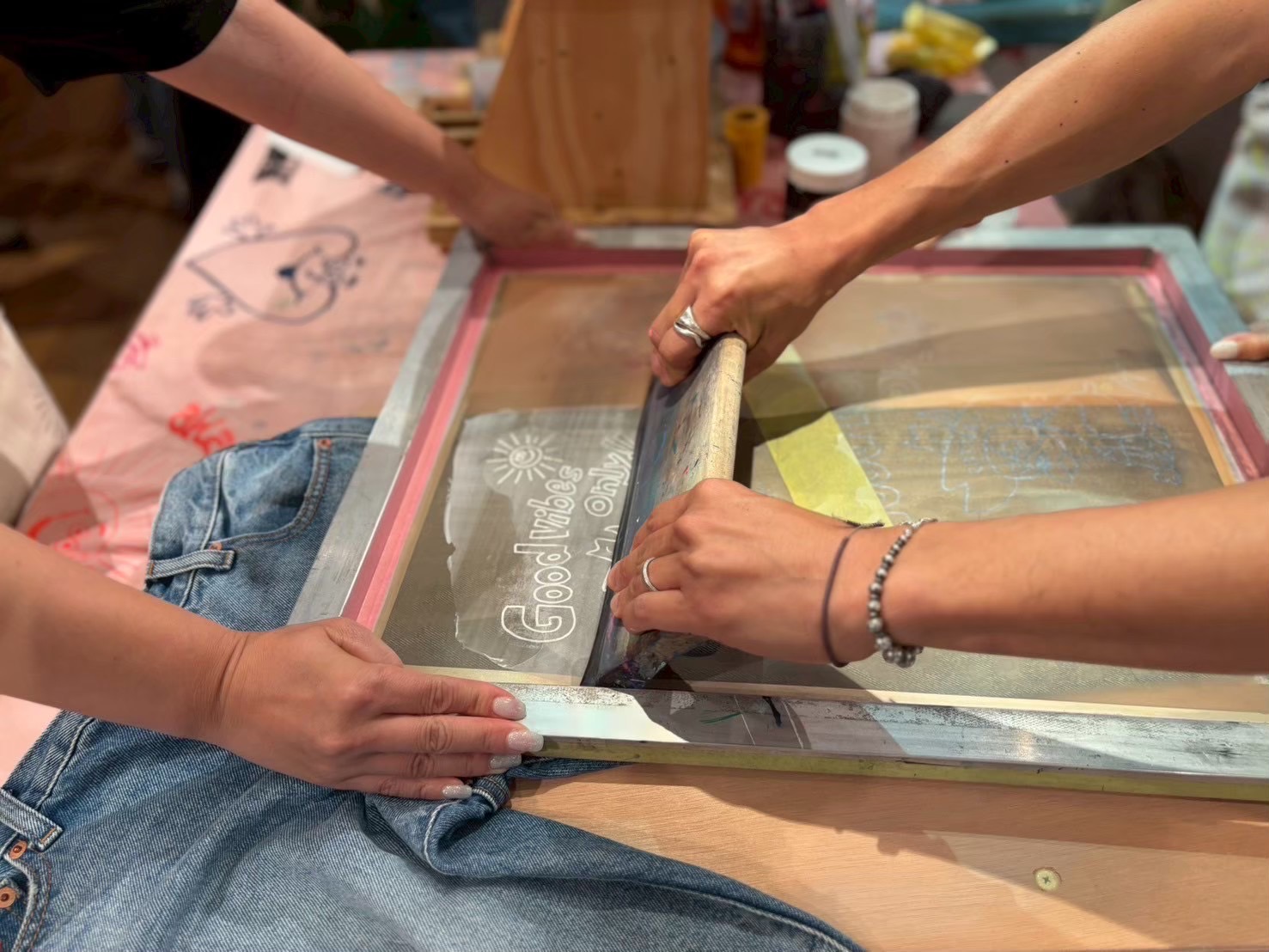 また会期中の週末には、シルクスクリーンのワークショップを開催。お持ちの洋服やバッグに、Ryu Ambeのオリジナルデザインをその場でプリントすることができます。ご予約は不要。無地の白Tシャツもご用意しておりますので、手ぶらでもご参加いただけます。